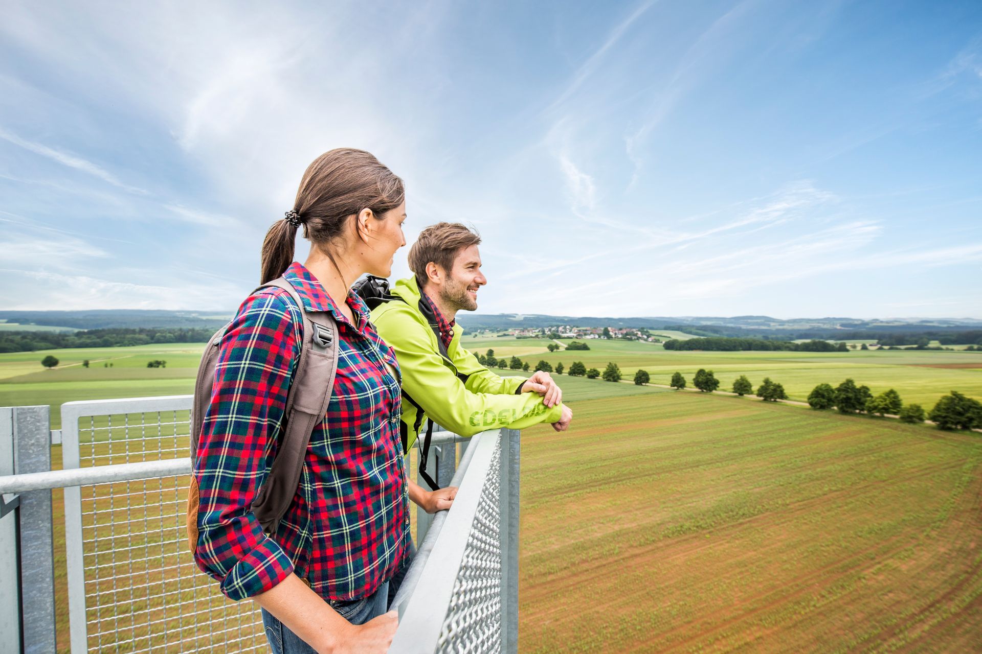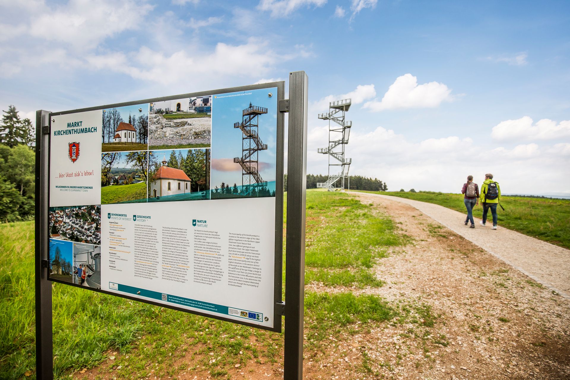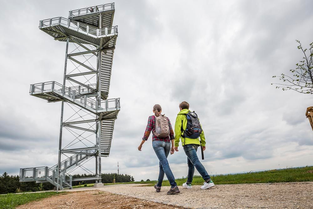 Die Gesamthöhe der Turmanlage beträgt etwa 25 Meter. Bis zur Aussichtsplattform sind es sieben Podeste und 133 Stufen. Der Aussichtsturm wird über eine außenliegende Treppenanlage mit geraden Treppenläufen und dreieckigen Zwischenpodesten erschlossen. Mit jedem Stockwerk ändert sich die Blickrichtung. Von oben hat man bei guter Sicht einen herrlichen Blick. Vom Fichtelgebirge im Nordosten bis in die Fränkische Schweiz im Westen.
