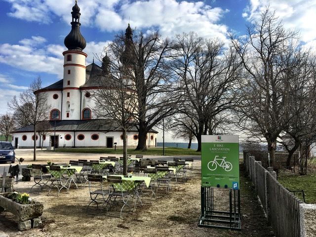 Ladestation für E-Bikes direkt an der berühmten Dreifaltigkeitskirche Kappl und dem Traditionswirtshaus Kapplwirt. Vier Steckdosen zum gleichzeitigen Laden von vier E-Bikes. Bitte denke Sie an Ihr Ladegerät!