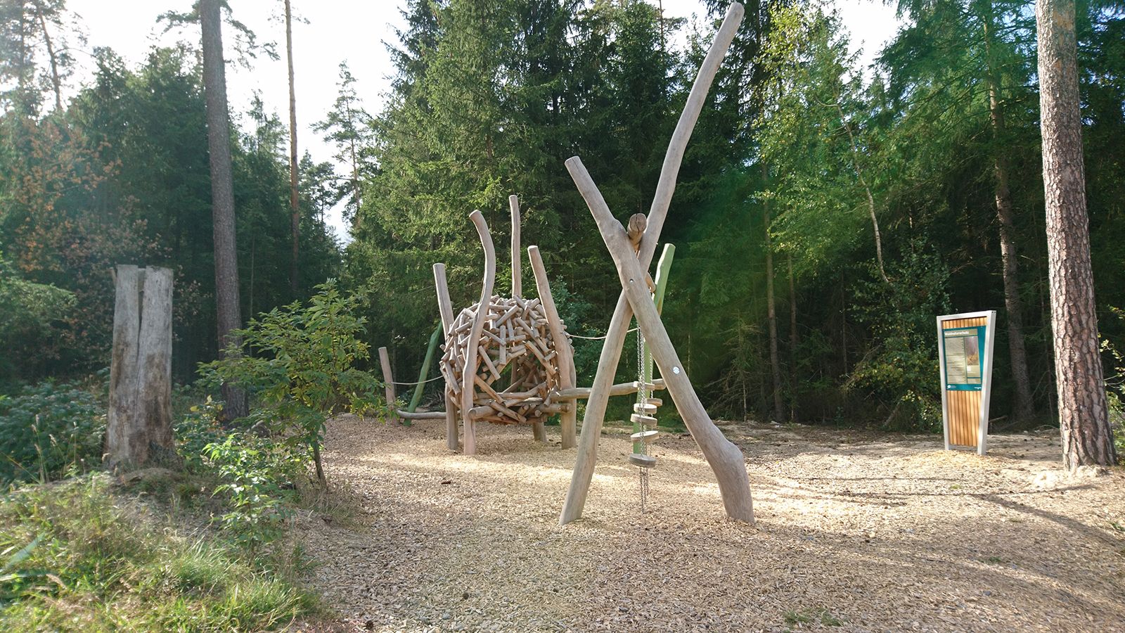 Spielerisch den Wald entdecken - egal ob zu Fuß, mit dem Rad, mit dem Kinderwagen oder schon auf eigenen Beinen. Am Walderlebnispfad Waldnaabaue begebt ihr euch auf eine abwechlsungslreiche Naturexpedition. Waldwirtschaft und Geschehnisse im Wald - hier warten für die kleinen und großen Wanderer 12 Stationen: Fußfühlpfad, Pilze und Höhlen, Family-Bikeparcours, Moosweiher, Kletterparcours, Fitness-Treffpunkt und vieles mehr. Auf vielfältigste Weise könnt ihr die Natur erobern. Dabei solltet ihr immer die Augen offen halten, die mit der Kettensäge gefertigten Holzfiguren entlang des Wegs sind einzigartige Wegbegleiter durch den Wald und jede ist ein kleines Kunstwerk.