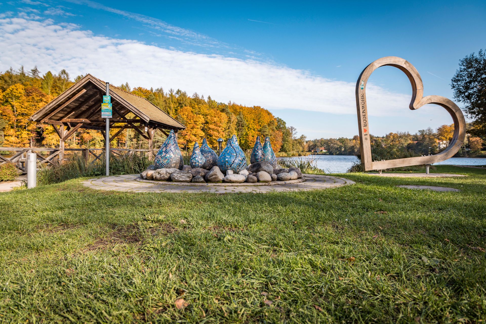 Surfen, Paddeln, Bootfahren, zwei große Sandbadestrände, kleine, natürliche Badebuchten entlang des Seeufers, Liegewiese, Ruderboot-und Tretbootverleih, schwimmende Insel, Kunstgarten mit zahlreichen Objekten im Uferbereich, Kiosk, Sanitäranlagen, Eintritt frei, Parkplätze an der Verbindungsstraße Bodenwöhr-Taxöldern.