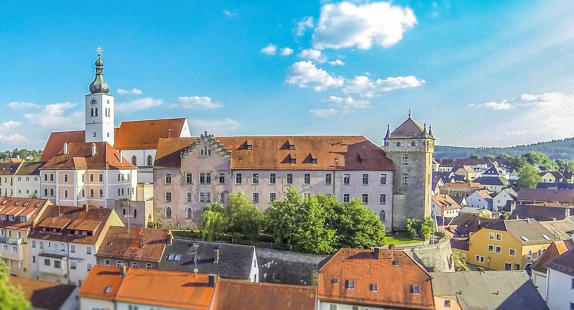 Der südwestliche Flügel, das sog. Neue Schloss, wurde in der 1. Hälfte des 16. Jh. ausgebaut, die sog. Dürnitz im Norden (15. Jh.) wurde 1857 nach Plänen von August von Voit gänzlich im Stil der Neugotik umgestaltet. 1869 erfolgte die Erweiterung der Dürnitz nach Osten. Insgesamt wurde die Anlage für den Zweck des Amtsgerichts und Bezirksamts im 19. Jh. stark übergangen, bevor sie in den achtziger Jahren zum Museum umgebaut wurde.