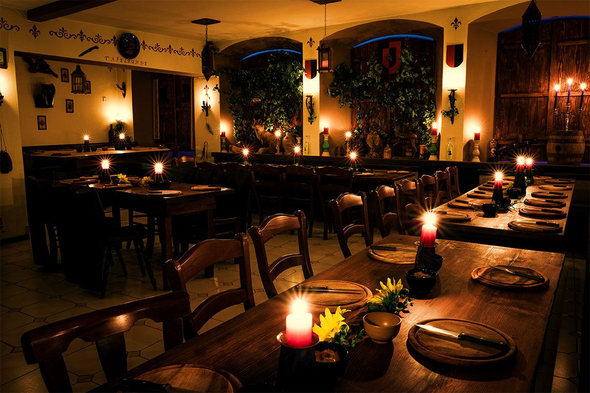Zu einem Datum Eurer Wahl oder unsren festen Terminen zelebrieren wir für Euch und Eure bis zu 100-köpfige Gefolgschaft das "Original Rittermahl". Termine siehe Homepage www.original-rittermahl.de
