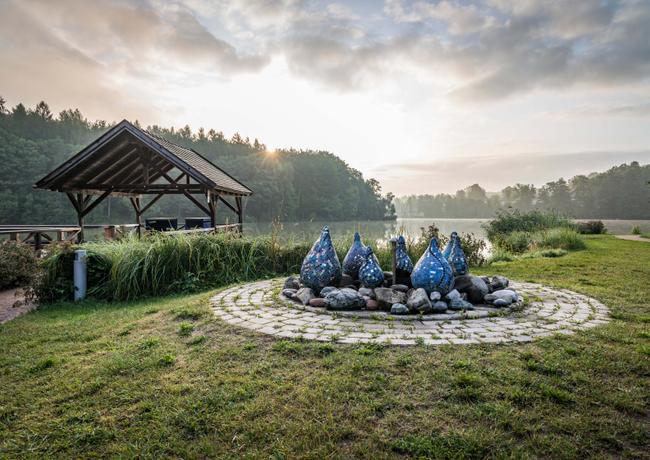 Die Künstlerin Christiane Schinner hat am Südufer des Hammersees zusammen mit Kindern, Jugendlichen und Erwachsenen einmalige Kunstwerke aus kleinen Mosaikfliesen geschaffen. Sie alle beziehen sich auf das Element Wasser - ob schlafende Meerjungfrau, freundliches Seeungeheuer oder steter Wassertropfen. Vom Brauereigasthof Jacob aus leiten die blau und silbern schimmernden Kunstobjekte am Ufer entlang.