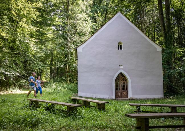 Malerisch mitten im Wald befindet sich die Kapelle Sankt Maria Magdalena Einsiedel.