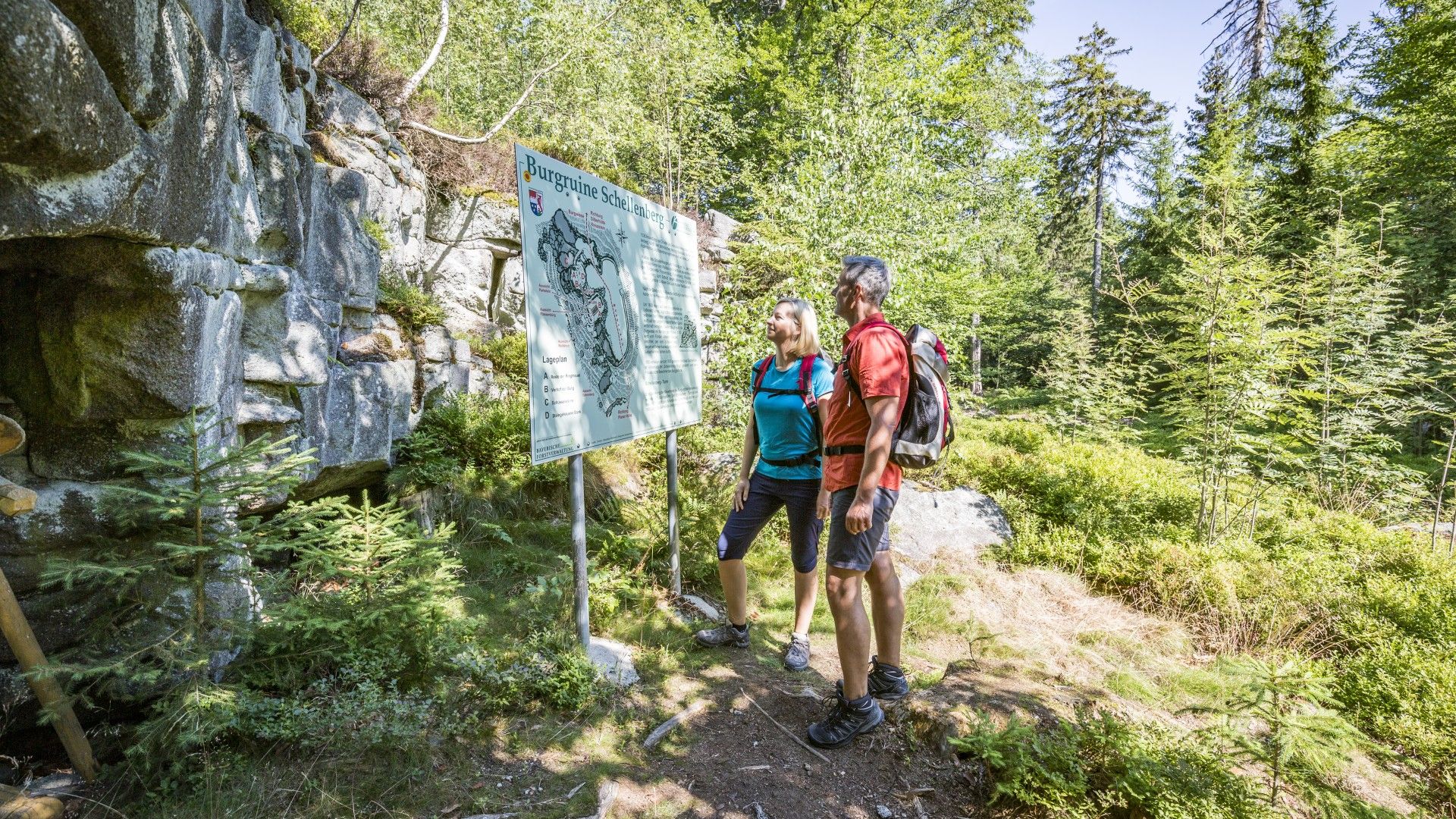 Steinige Launen der Natur begegnen dir rund um den Schellenberg: kuriose Felsformationen mit klangvollen Fachbezeichnungen wie Wollsackverwitterung, Granittürme und Blockhalden. Die Burgruine Schellenberg hat es sich gleich mal auf solchem Naturfels bequem gemacht - und für dich gibt es oben drauf eine Aussichtsplattform. An der alten Mühle Gehenhammer empfängt dich das Klappern des Wasserrads - und in der Brotzeitstube oder auf der Terrasse eine Stärkung (geöffnet Mittwoch und Freitag bis Sonntag).