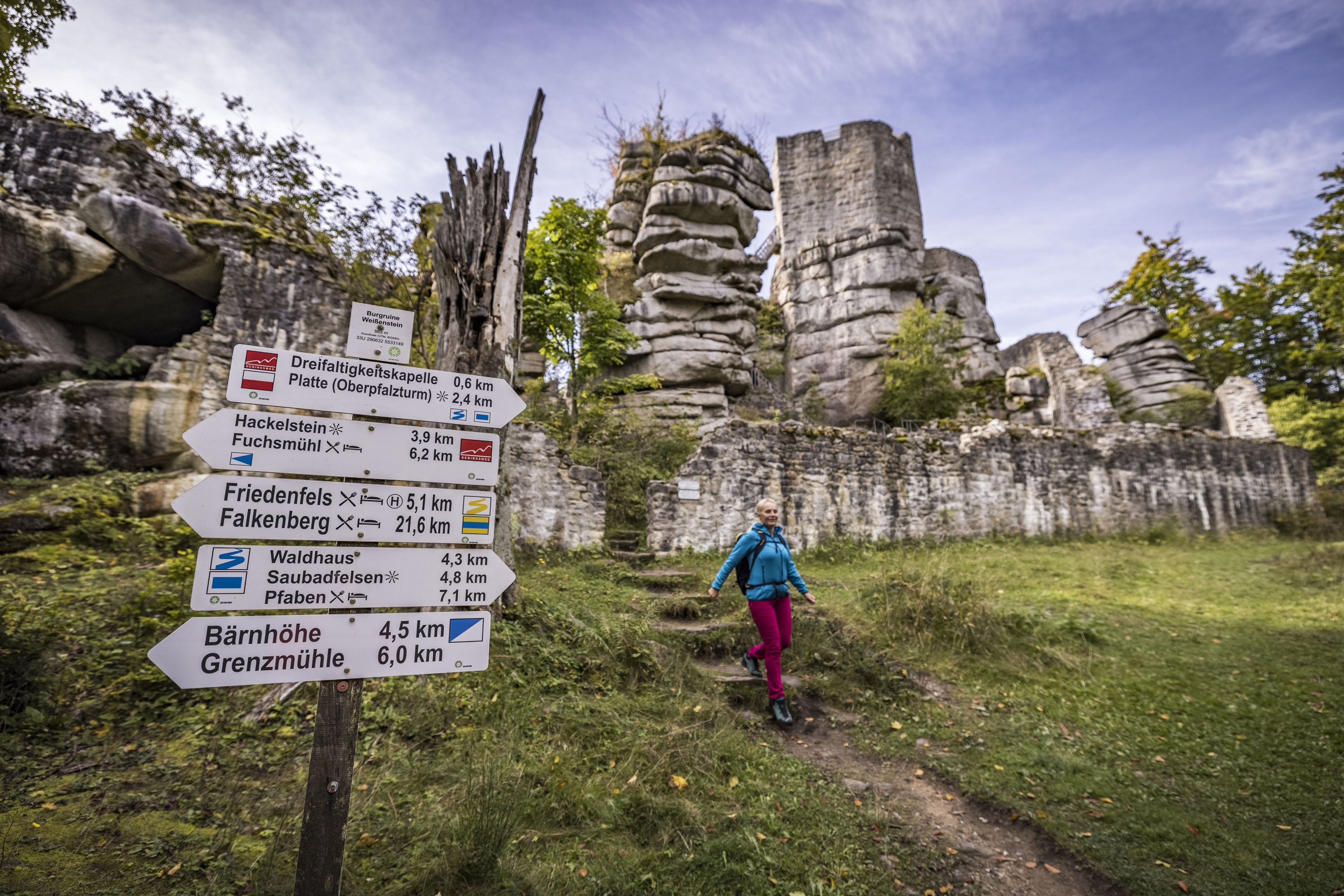 Der Oberpfälzer Wald – dieser durch und durch authentische Teil Bayerns – hat die Gabe, jeden in seinen grünen Bann zu ziehen, für den „Natur“ wahres Lebensgefühl bedeutet und der sich für Wege zu Jahrhunderte alter Geschichte, echte Heimatverbundenheit und unkomplizierte Menschen begeistern kann. Warum? Weil „Wandern im Oberpfälzer Wald“ immer auch Hineinspüren in die Geschichte heißt und das Verstehen der typischen Oberpfälzer Seele. Hier im bayerisch-böhmischen Grenzgebiet faszinierende Bauten zu entdecken oder die gleichen uralten Pfade zu beschreiten wie Händler und Pilger vor vielen Jahrhunderten – das ist schon ein besonderes Gefühl. Es relativiert, erdet und verschiebt Perspektiven. Die beiden großen Fernwanderwege Goldsteig und Nurtschweg werden dabei ergänzt von Touren, die traditionell in der Region verwurzelte Themen wie Fisch oder Bier, Wasser oder Kultur respektvoll, authentisch und erfrischend offen aufbereiten. Immer verpackt in atemberaubende Wald- und Wasserlandschaften, gleichzeitig unaufgeregt, ehrlich und schnörkellos: Der Oberpfälzer Wald ist eine stille Größe, die überraschend leicht daherkommt.