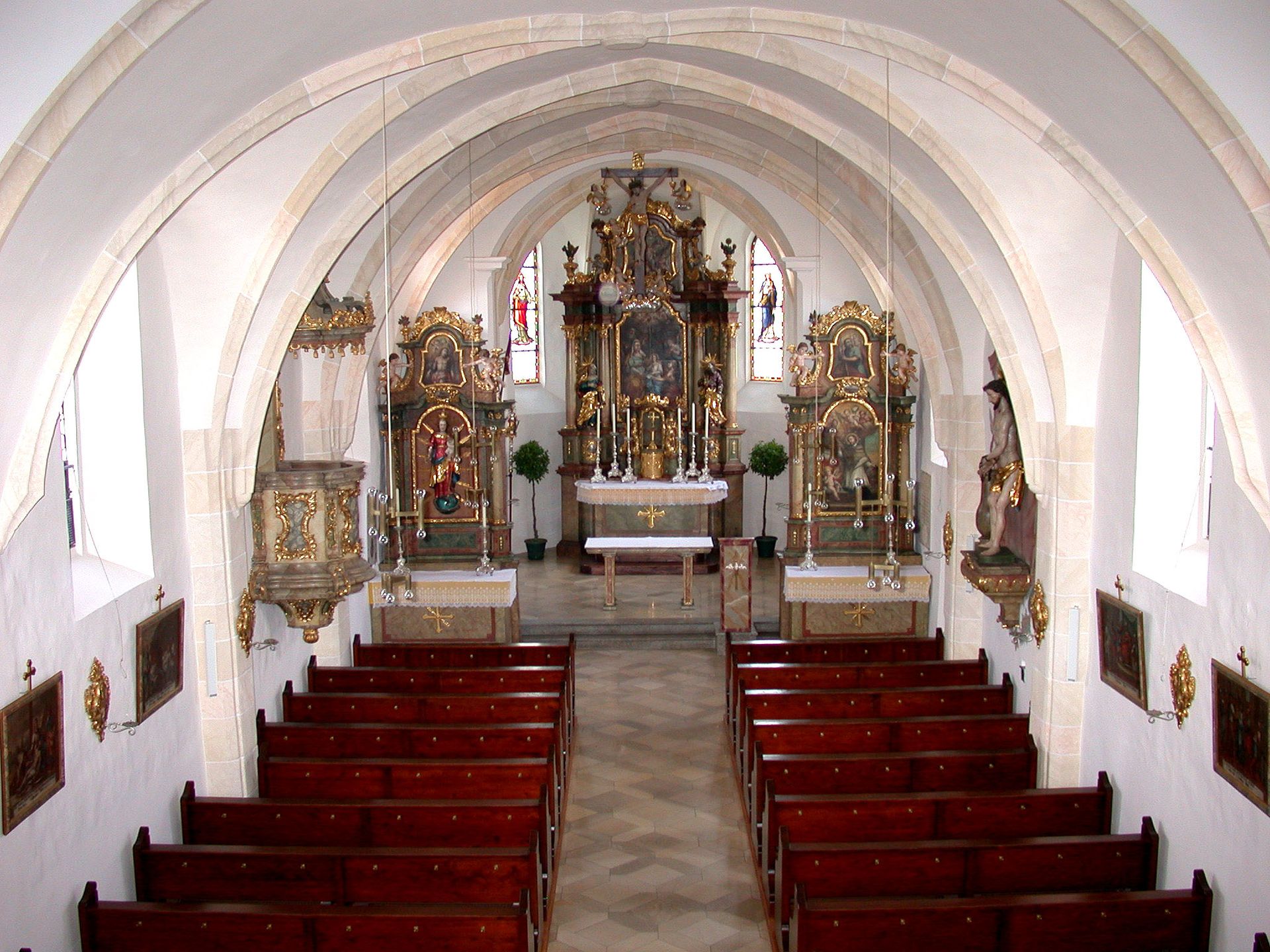 Die Kirche St. Anna wurde auf Initiative des Ritters Georg Wisbeck zwischen 1509 und 1516 erbaut. Sein Wappen trägt der Schluss-Stein im gotischen Kreuzgerippe. Mit der Urkunde des Regensburger Bischof Johannes vom 12. März 1516 ist die Erstnennung der Kirche bestätigt. Diese Urkunde betraf die Übertragung der von Heinrich Nothaft im Jahr 1401 errichteten und später von den Nothaften noch erweiterten Mess-Stiftung für die Burgkapelle St. Georg in die neu erbaute Kirche St. Anna. Georg Wispeck hat noch Landgüter dazu gestiftet und so dieses Benefizium aufgewertet. Weitere Ergänzungen zum Benefizium gehen auf das 18. Jh. zurück. Mit dem Umbau der Kirche im 18. Jh. erhielt die Kirche eine barocke Ausstattung. Die Kirche wurde 1950 erweitert und renoviert. Weitere Sanierungen der Kirche wurden in den Jahren 1990/1991 sowie im Jahre 2007 durchgeführt.
