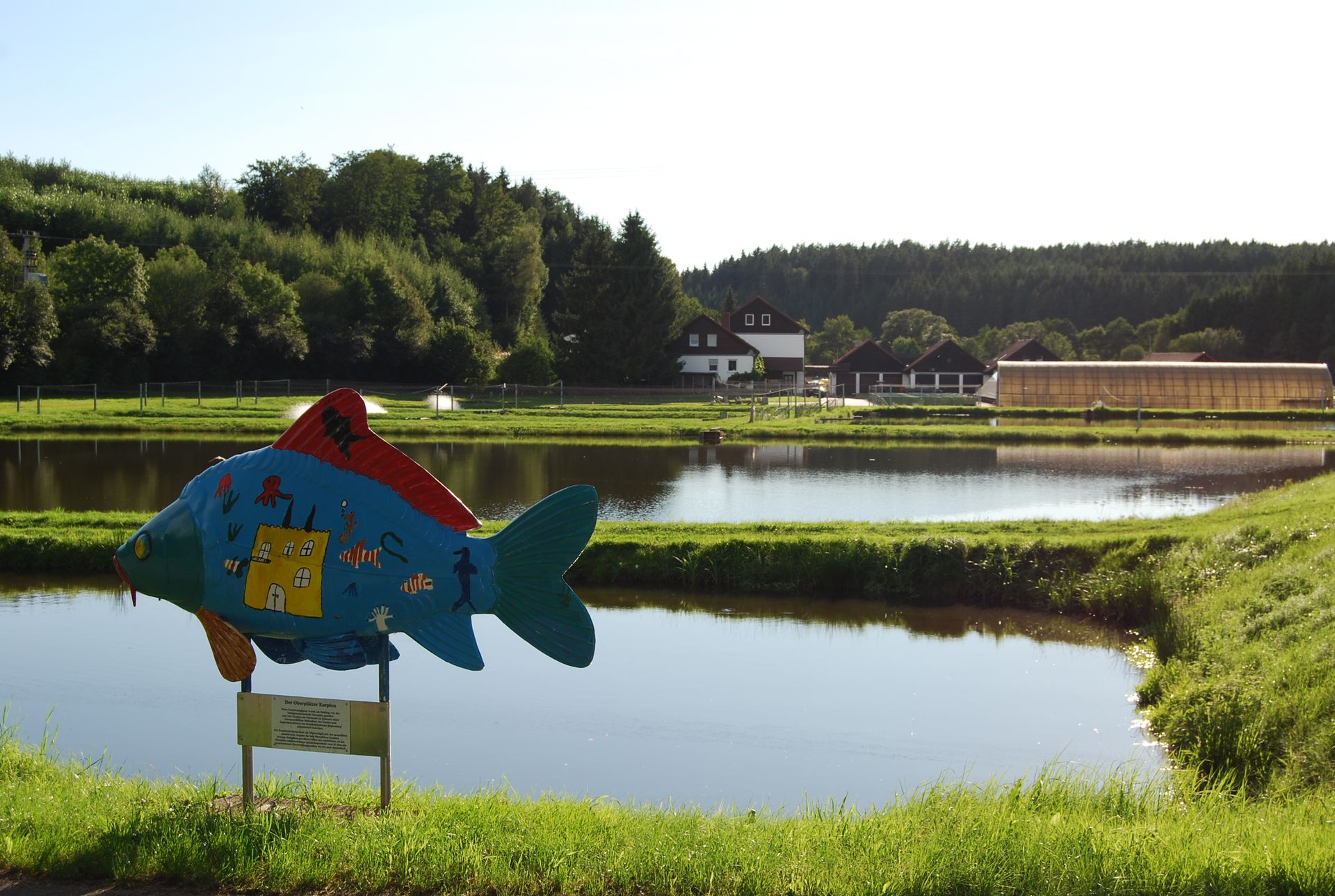 Die weitläufige Anlage, im Tal der Schlattein kurz vor deren Mündung ion die Waldnaab gelegen, umfasst 9 Hektar Teichfläche und Einrichtungen wie Warmwasserbruthaus im Durchlaufverfahren, Untersuchungslabor und Lehrsaal. Sie ist über die B 15, Abzweigung nach Ernsthof Richtung Wurz oder von Wurz her zu erreichen!