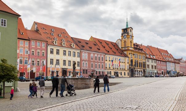 Grenzenlos radeln - auf alten Bahntrassen und durch malerische Auenlandschaften! Der Wallenstein-Radweg mit einer Nord- und Südtrasse sowie einer Verbindungsspange wurde zur Gartenschau 2006 Marktrewitz-Cheb (Eger) geschaffen. Die Südroute führt dich ab dem charmanten Marktplatz der Stadt Cheb (Eger) über die Grenze und vorbei an der Straußenfarm Mitterhof in die Klosterstadt Waldsassen. Augen auf – hier gibt es viel zu entdecken! Entlang der Wondreb gelangst du nach Mitterteich. Schau doch mal im Museum Porzellan – Glas - Handwerk vorbei, bevor du durch die Ausläufer des Steinwalds nach Marktredwitz radelst. Im Auenpark, dem ehemaligen Gartenschaugelände, kannst du deinen Radltag entspannt ausklingen lassen. Anschließend kannst du weiterradeln oder mit der Bahn zu deinem Ausgangspunkt zurückkehren.